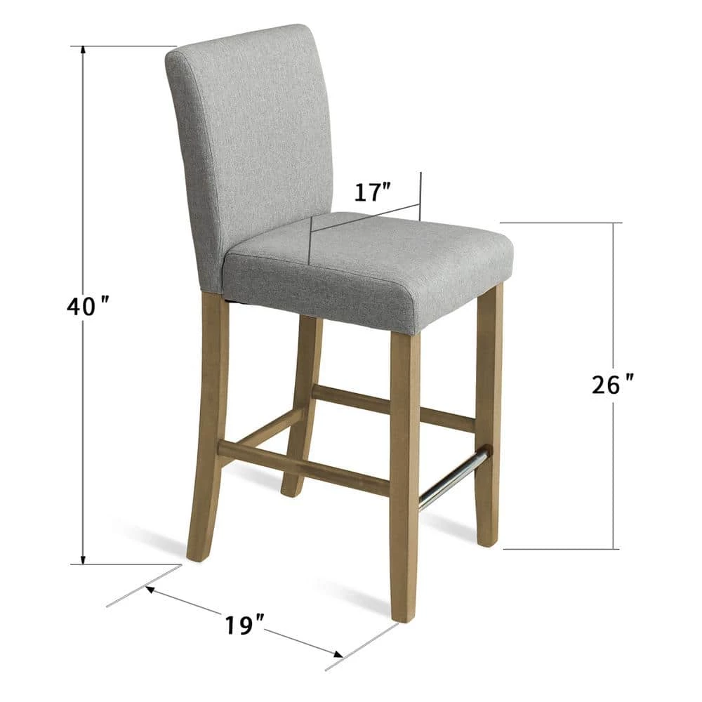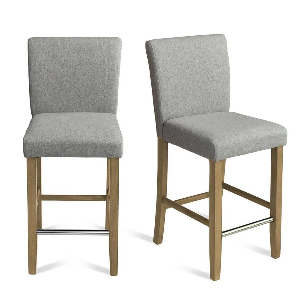 Define your dining area with the elegance of this counter stool. Classic Parsons-style design, but upholstered in soft fabric. With a roomy cushioned seat and back, this stool has the rubber wood frame with a natural finish, and an Stainless-Steel footrest. 3-colors are available ,the timeless grey will never go wrong, the soft turquoise is very romantic and clean, the mustard yellow will definitely fresh your area up. This piece could create a beautiful transitional look in your dining room.