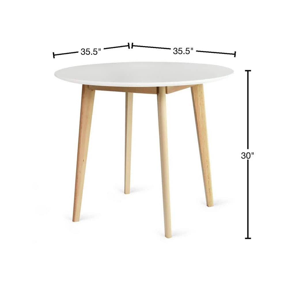 Crafted in a classic mid-century shape with solid pine wood. Clean, compact look that’s perfect for small spaces. Top is made of manufactured wood. 35.5 in. L x 35.5 in. W, decent size for an apartment, can fit 4 chairs easily without it seeming too cramped. Complete the entire look by pairing simple Scandi style chairs, then it could easily be the centre of attention.