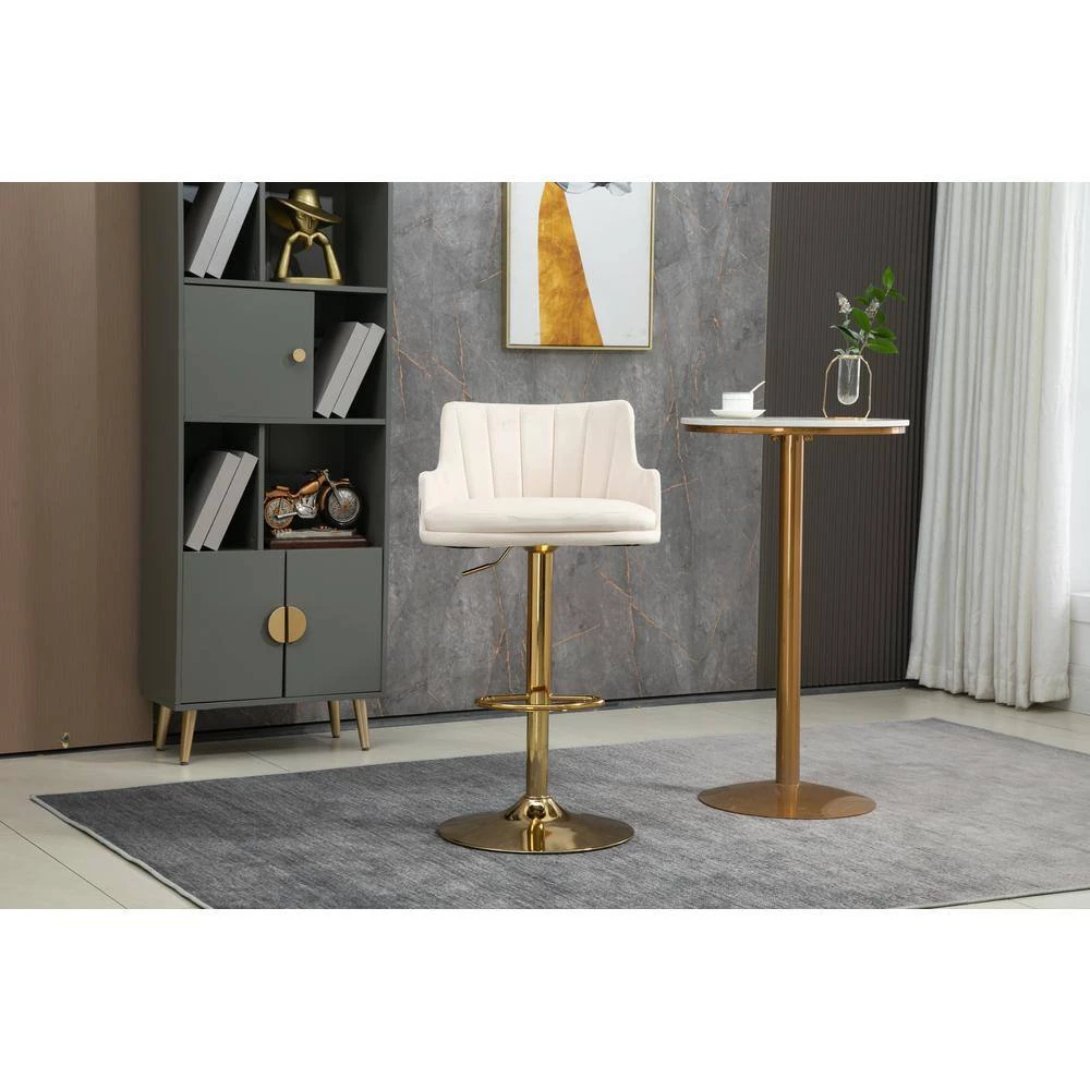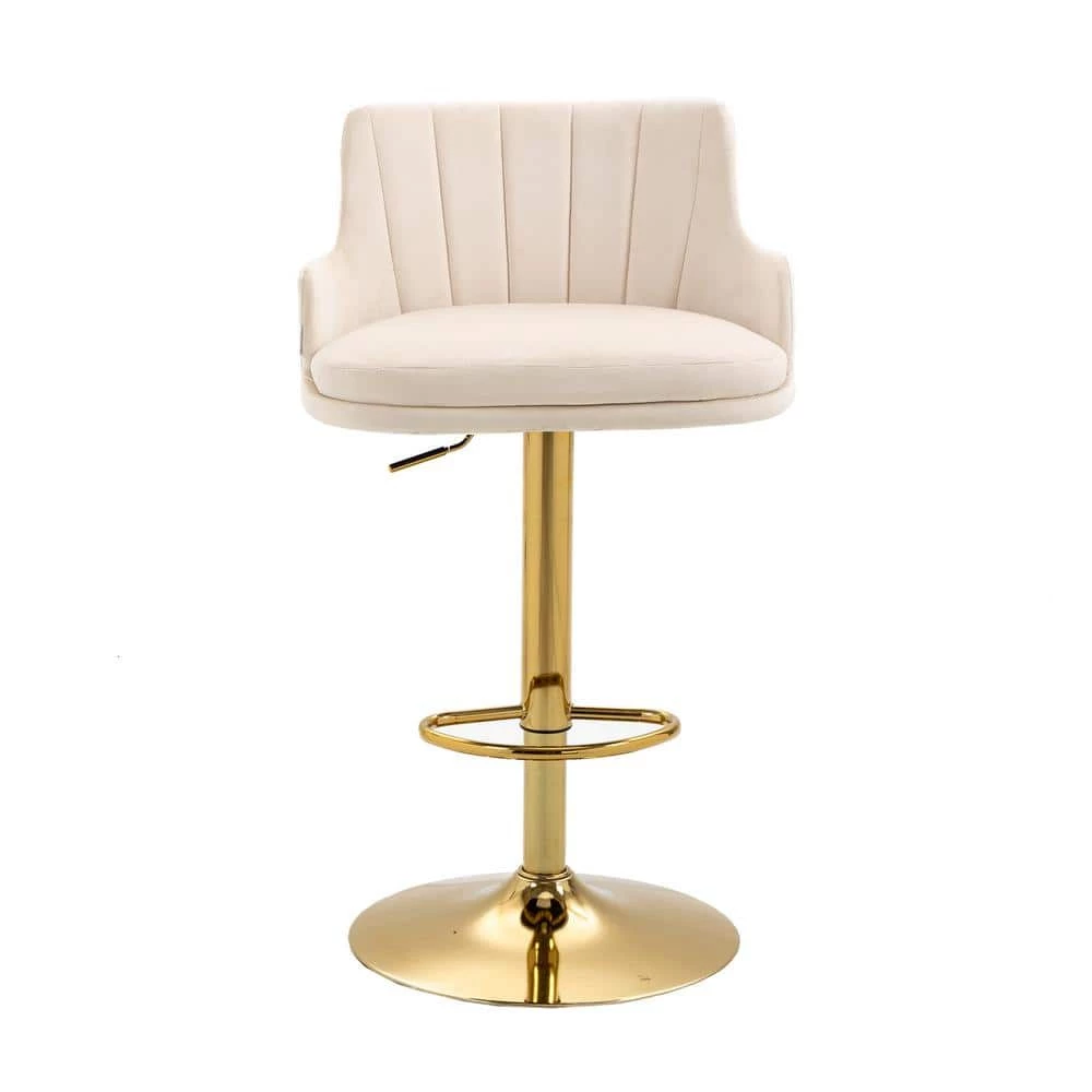 - The height of the velvet bar stool can be adjusted from counter to bar height (33.85″-42.13″H)