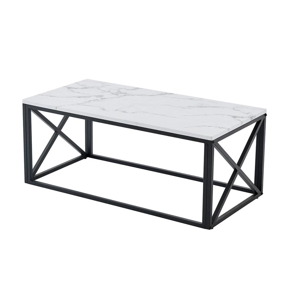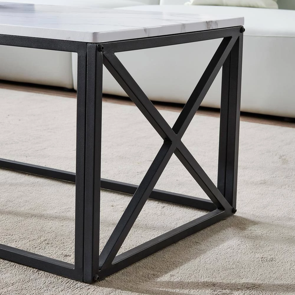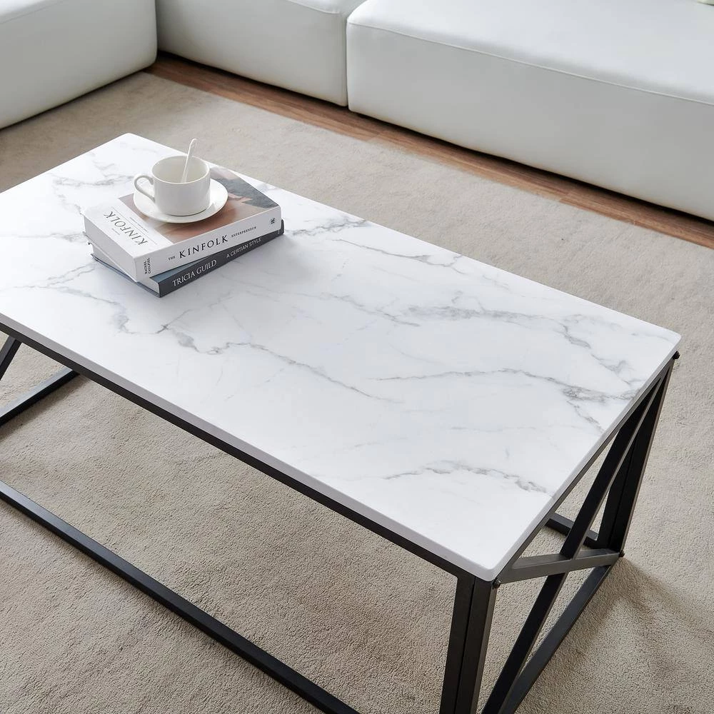 If you are looking for a piece that anchors your living room, then this stylish modern rectangular coffee table will be a good choice. It frames in a metal base with a X design on the sides,marble color mdf top for a touch of sophisticated glamour. This table’s glass top makes it a modest yet elegant living room addition for placing magazines, snacks, beverages, or a decorative centerpiece