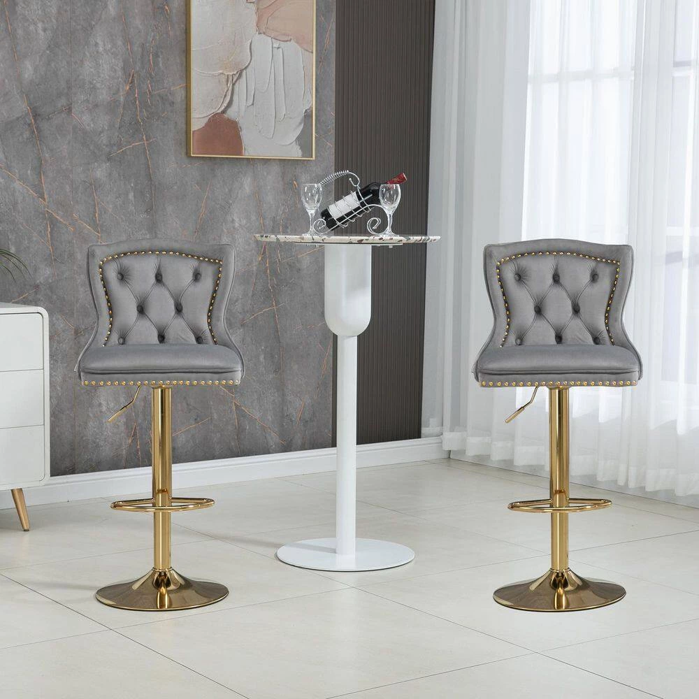 HOMEFUN bar stools with simple and smooth lines will become the focal point of the home. The metal bracket is velvet, and the golden metal bracket makes the chair look more noble and elegant, This morden bar stools combined of antique color and modern design can match any decoration or style, are great for dining room, kitchen, living room, entertainment area, rest area, restaurant, office, exhibition, coffee house and so on.After a tiring day, relax with a glass of wine or coffee at the bar. The bar stools are made of High-quality fabirc , filled with soft foam sponge, can easily be wiped with wet towel. Its ergonomic-designed backrest and footrest can provide more support for your body while sitting, making it relaxing and safe at the same time.