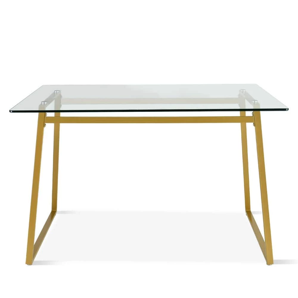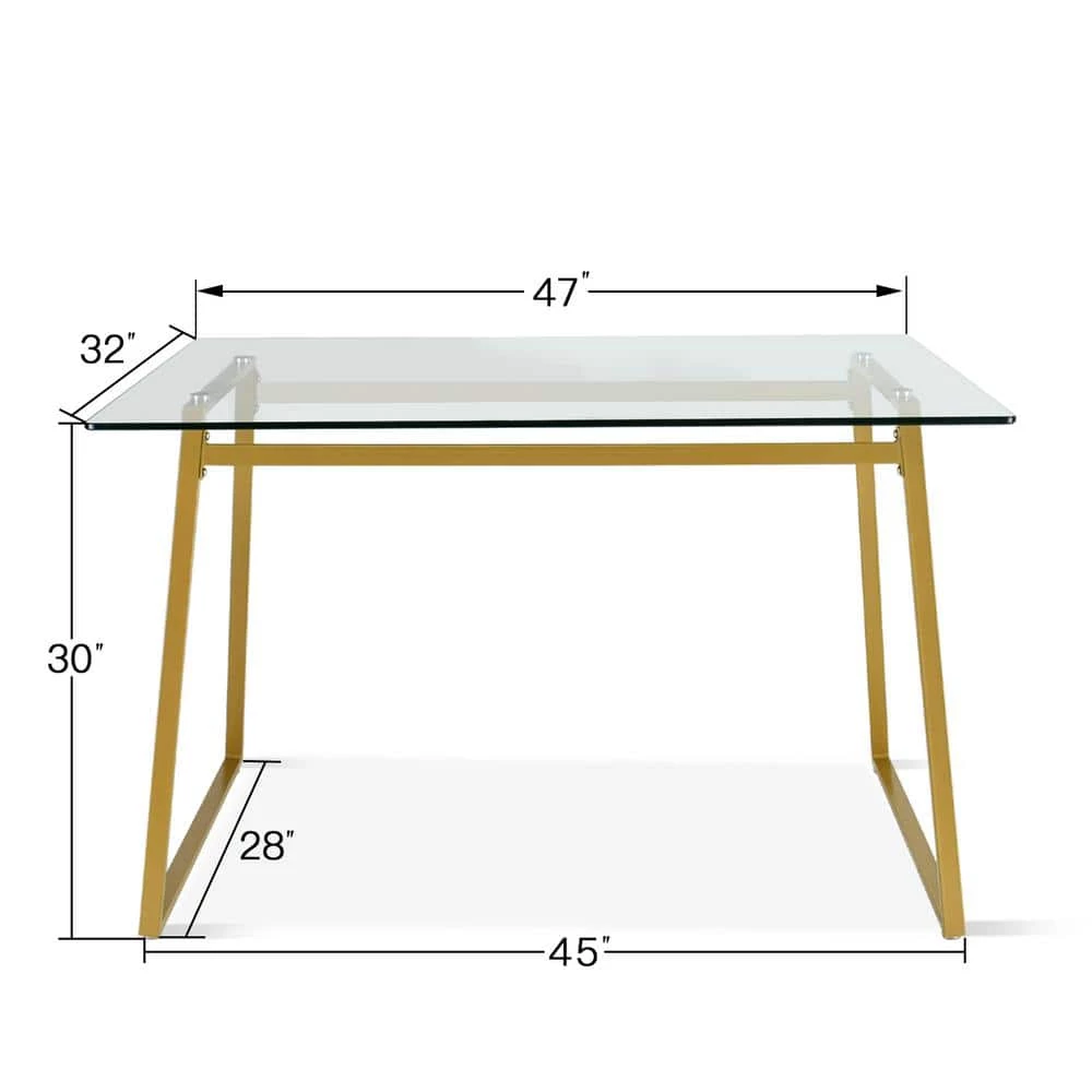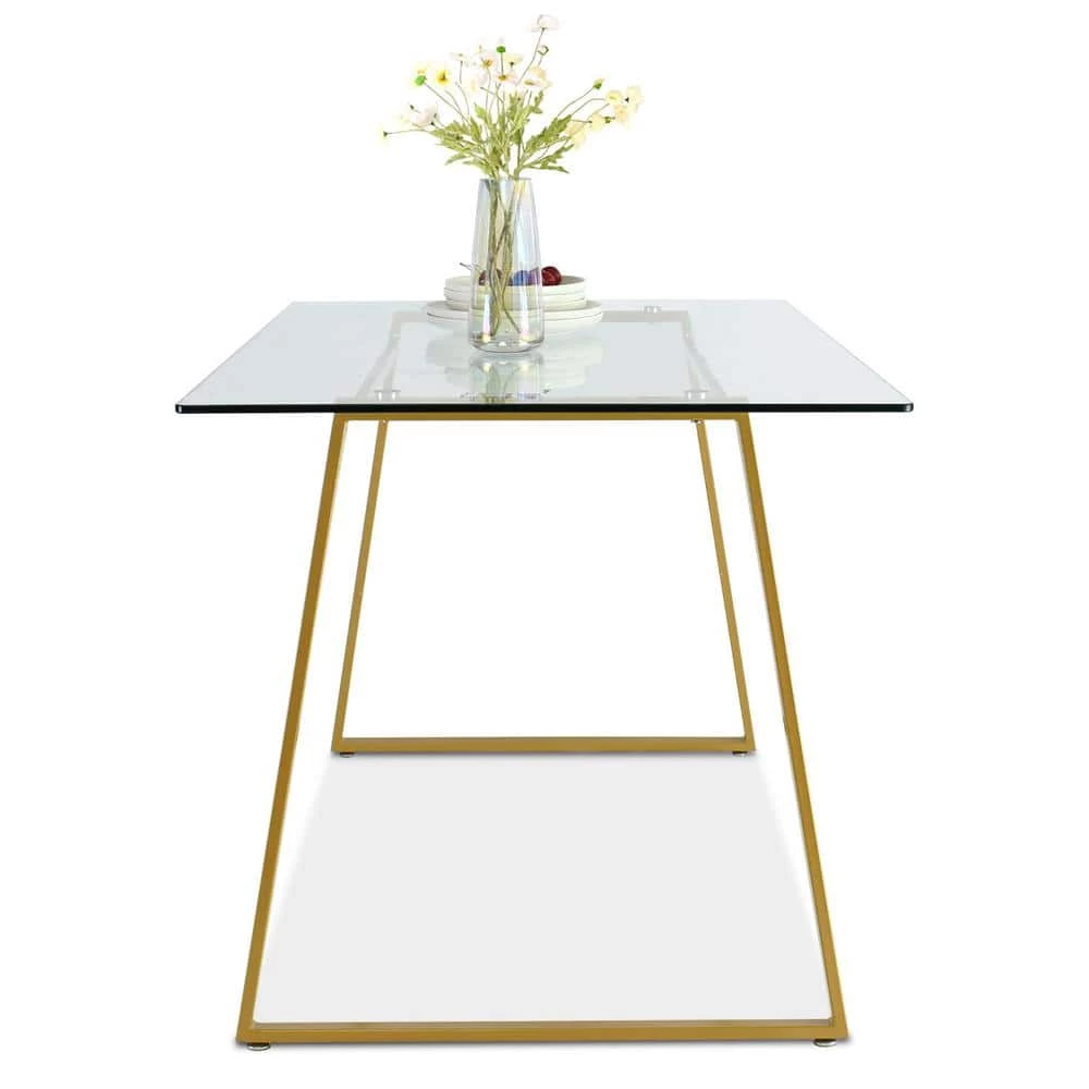 This table is a sleek and contemporary style that’ll add a sophisticated touch to your home. The MATT shine of GOLD is JUST RIGHT. The metal durable base is topped with transparent TEMPERED glass, allowing the beauty of the construction to be exposed.