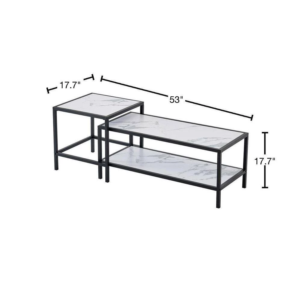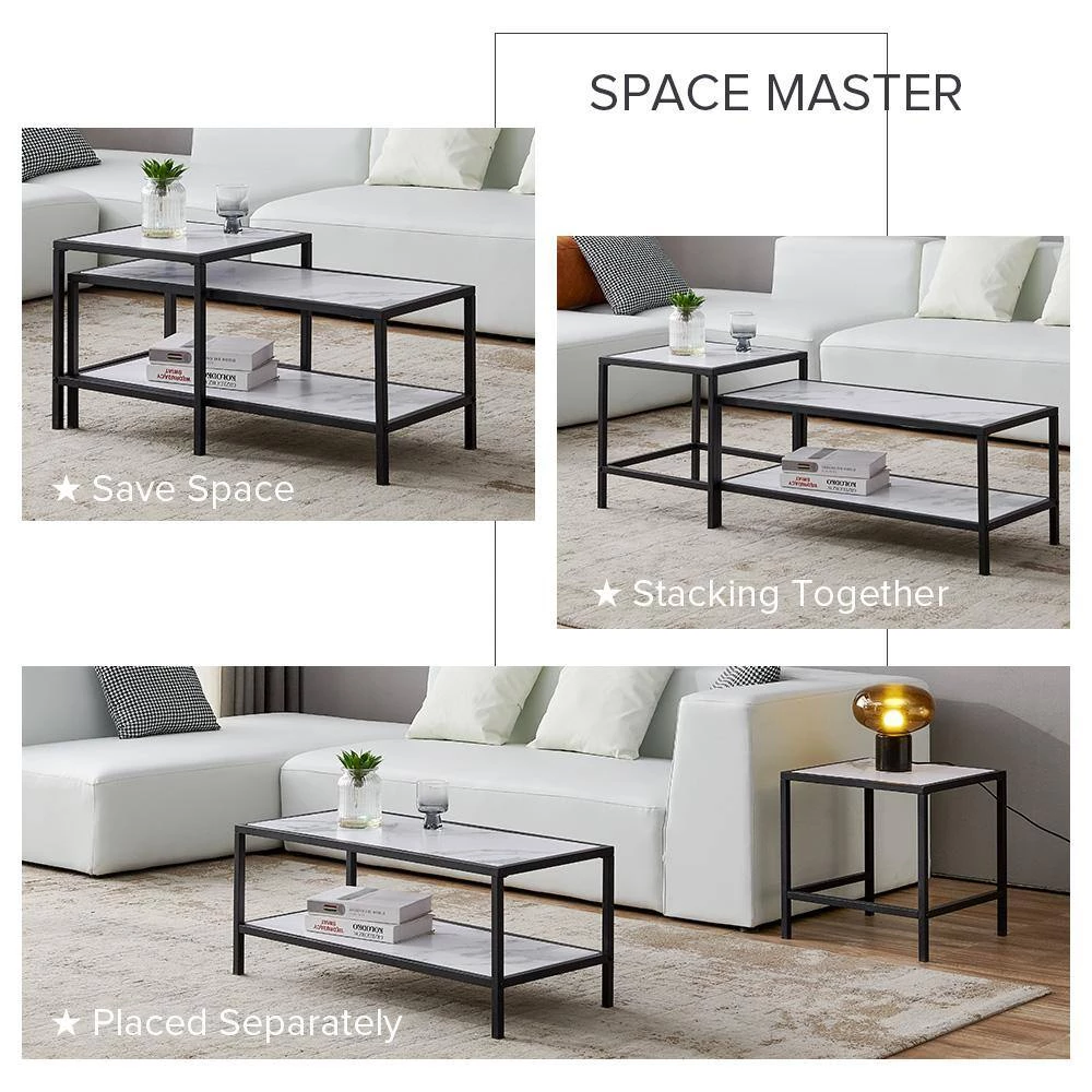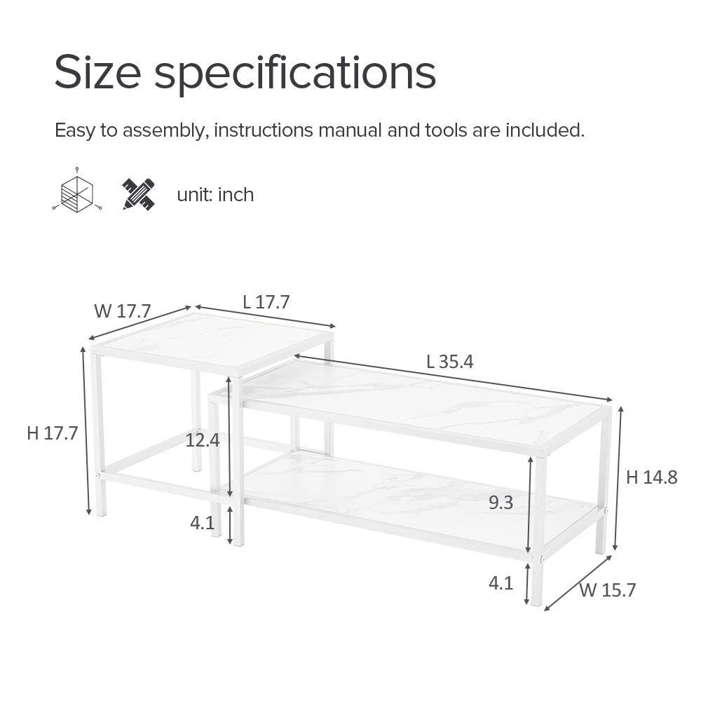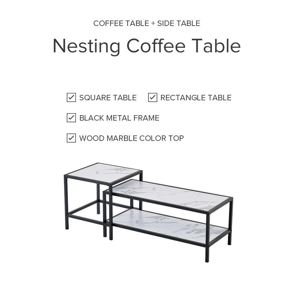The nesting coffee table includes 2 pcs tables, small square end table and large rectangle table. Allowing you to create your own contemporary look by stacking together to save space or placed separately as end tables.The staggered heights are on-trend.Different kinds of combination style can be easily achieved to fulfill changing individual requirement based on your home configuration.