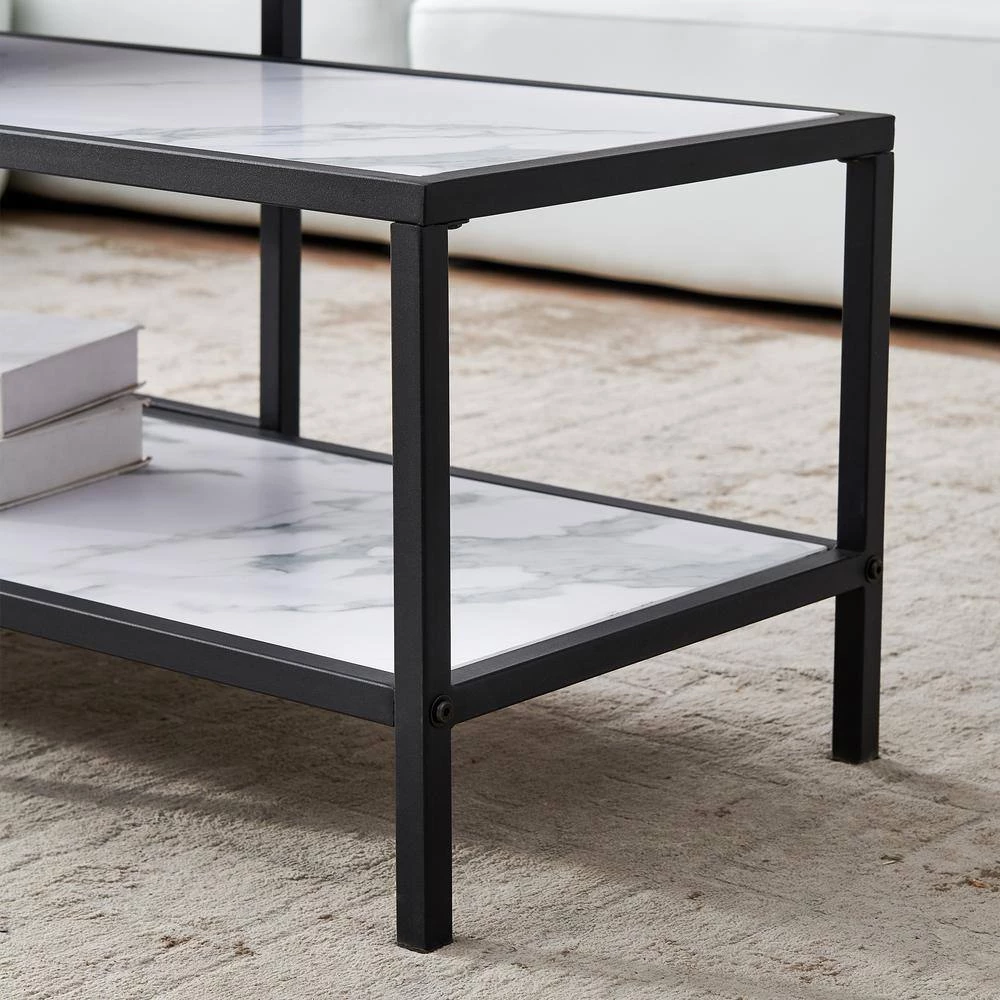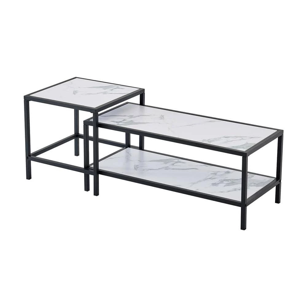 - The top surfaces are finished in mdf wood with marble color. Combined with the metal legs, it provides a trendy natural style.