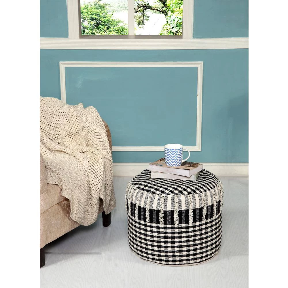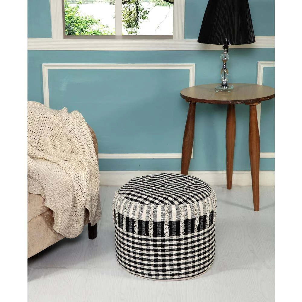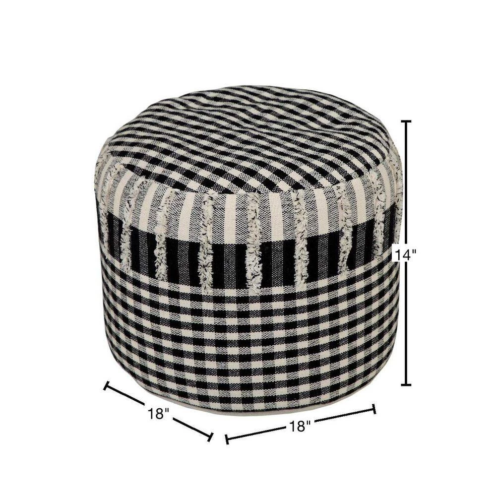 Add a functional and stylish coffee table that doubles as seating for your living space with this Black / White Plaid Pouf. The simple and clean design of this round ottoman pouf pairs seamlessly with a variety of different decors. Made with soft and durable pure Cotton for long – lasting use. This fun filled Poufs reveal the beauty of everyday moments shared with family and friends.