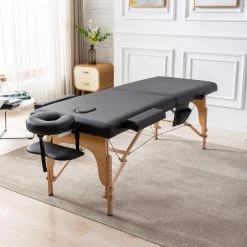 PU Leather 2-Section Wooden Adjustable Folding Memory Foam Massage Table by HOMEFUN