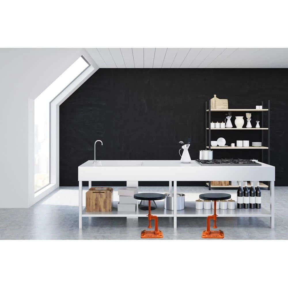 This unique piece of furniture is for the artistically minded. If you’re looking for an adventurous piece to add to your collection, this is the stool for you. With a truly unique aesthetic, this industrial piece is sure to stand out among the crowd which is a great thing. The industrial orange is toned down with the stained light wood seating top. This stool comes as an individual piece and is not sold as a set.
