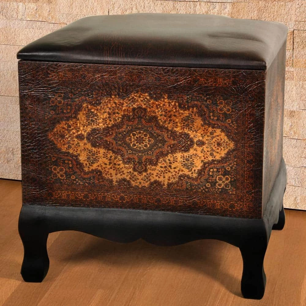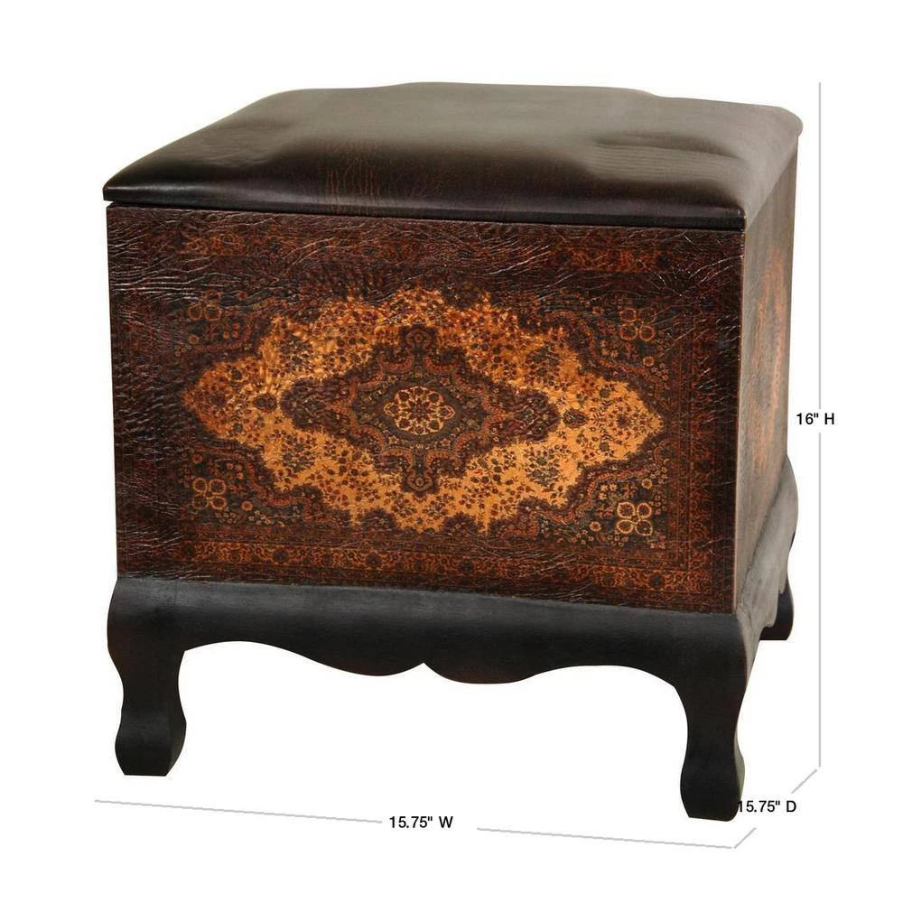 Unwind after a long day on the elegant Oriental Furniture Ottoman. This ottoman features a wooden design and leather upholstery, which has the ability to resist damage from spills and stains. It features a classic style, focusing mostly on finer details to bring your home to life.