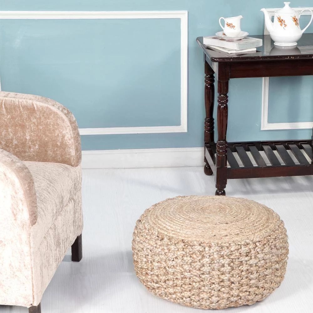 Hand braided for a unique look, this piece brings a farmhouse style within the home to complete your style. This functional piece can be used as a footstool, ottoman, or extra seating for a tight space. Get years of usage out of the product by adding this to a living area, bedroom, or playroom for versatile living. This piece is sure to please your desires by adding functional seating and style to the room.