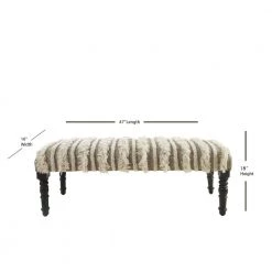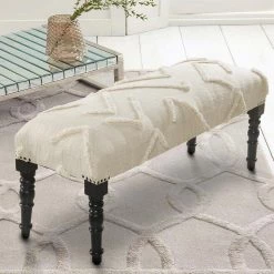 Tufted 18 in. Gray / White Cotton Geometric Diamond Distressed Wooden Bench by LR Home