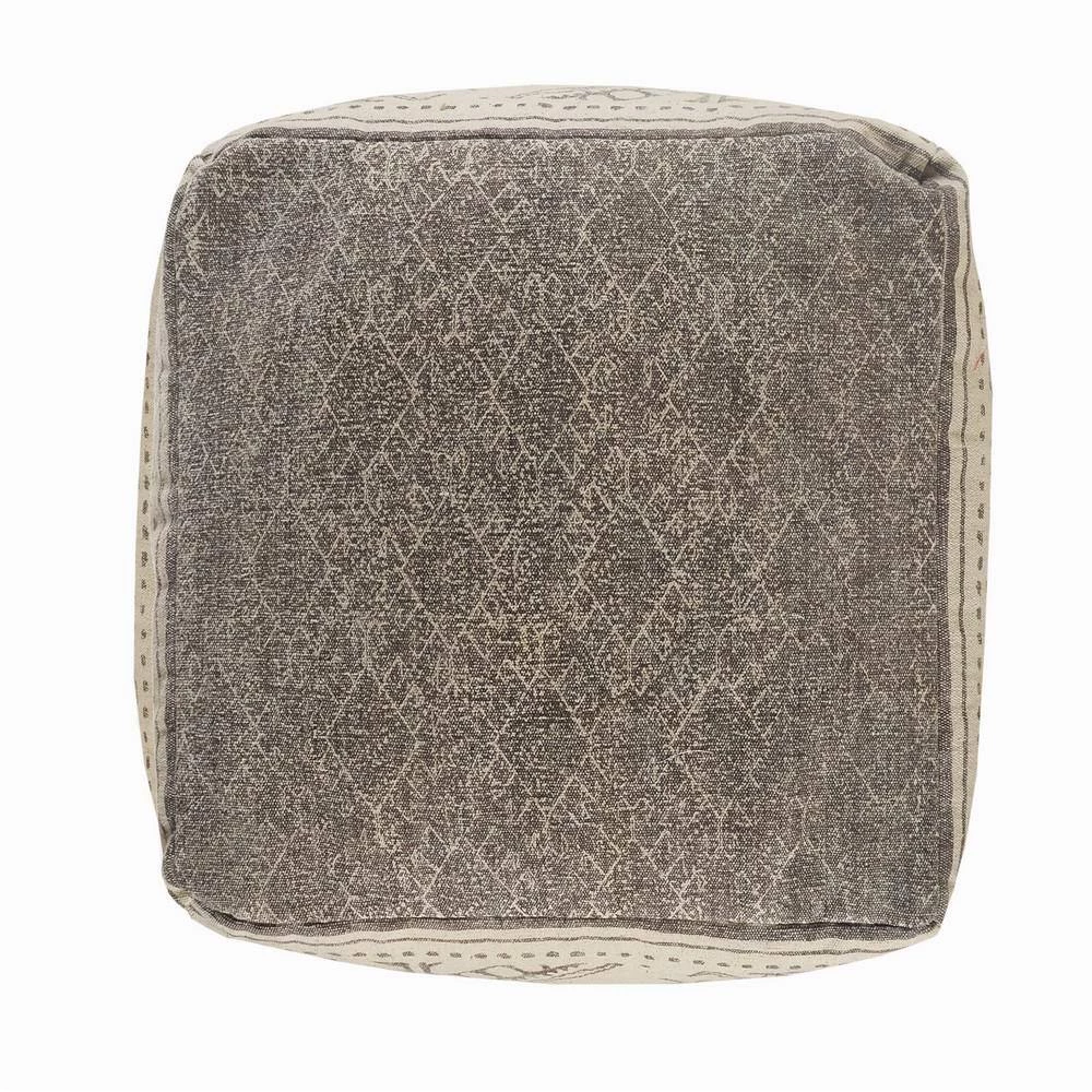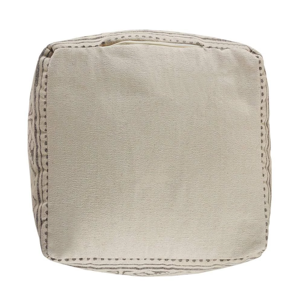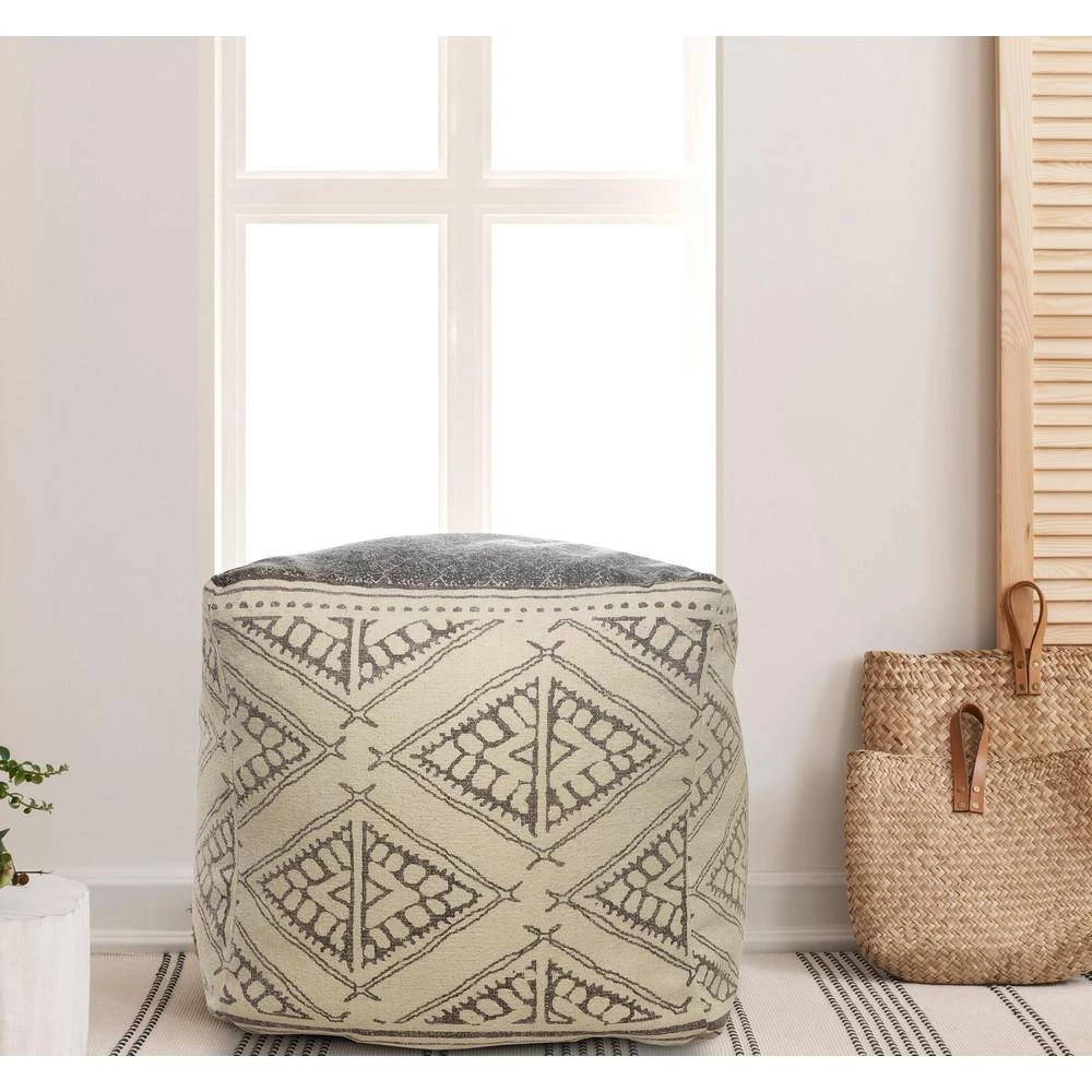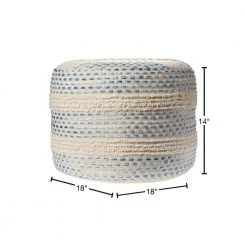 Our pouf collection is made to bring versatility into your space without sacrificing style. Use this piece as an extra seat, ottoman, footrest, or even a side table in smaller spaces for functional design. Featuring intricate geometric designs and balanced coloring, this pouf is a polished rustic accent for your home. This piece is sure to please your desires by adding functional seating and style to the room. Hand-loomed in India, this piece is made by talented craftsman dedicated to traditional processes and detailed work.
