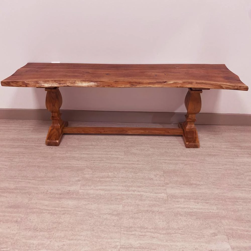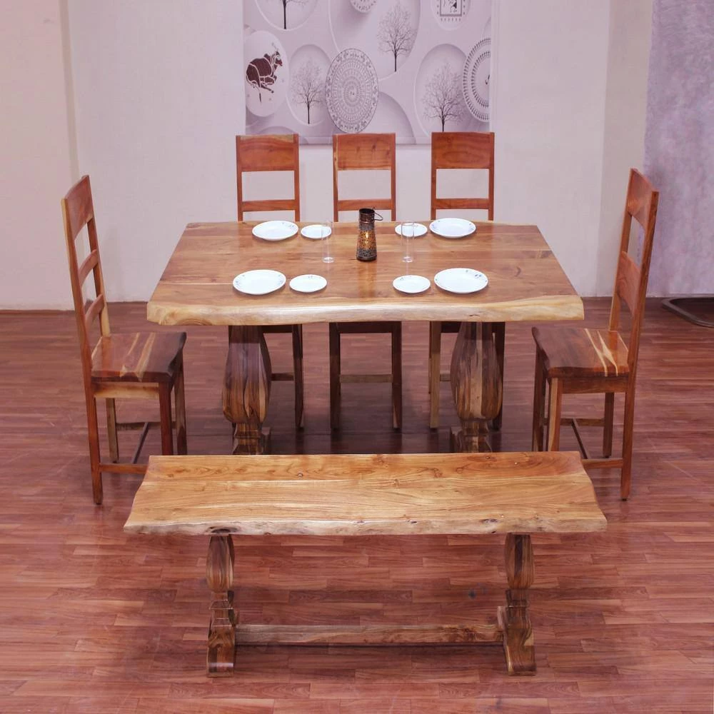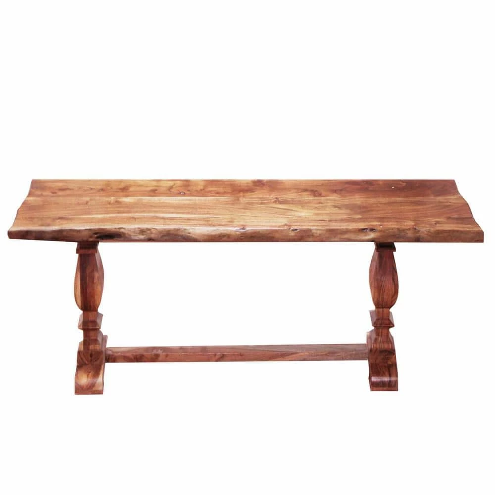 Crafted of solid acacia wood, our wooden benches are a sturdy, life-long investment for your home. Handmade in India, this piece features a glossed lacquer technique that displays the intricacies of the ethically harvested materials. From dinner parties to entryway seating, our bench provides the perfect accent for your home. Don’t forget to add the coordinating table to complete your dining room set.