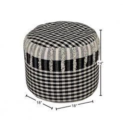 8 in. x 14 in. Plaid Black / White Checks Ottoman Pouf by LR Home