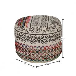 Authentic Floral Bohemian 18 in. x 14 in. Multi-Color Ottoman Pouf by LR Home