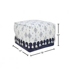 Shabby Chic Navy Blue / Peach 18″ x 14″ Square Rustic Textured Cotton Pouf by LR Home