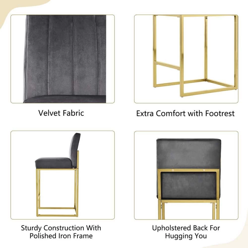 How about bring your home a sense of chic and bright? The collection of glamorous gold and textured gray are matching with kinds of interior. The counter height dining chairs are suitable with bar area, kitchen island, dining room, counter and etc. These chairs are the perfect addition to your home. Due to its reflective nature, this color may look lighter or darker based on the light in your home and if the fabric naps down or up. Please feel free to contact us if any issues.