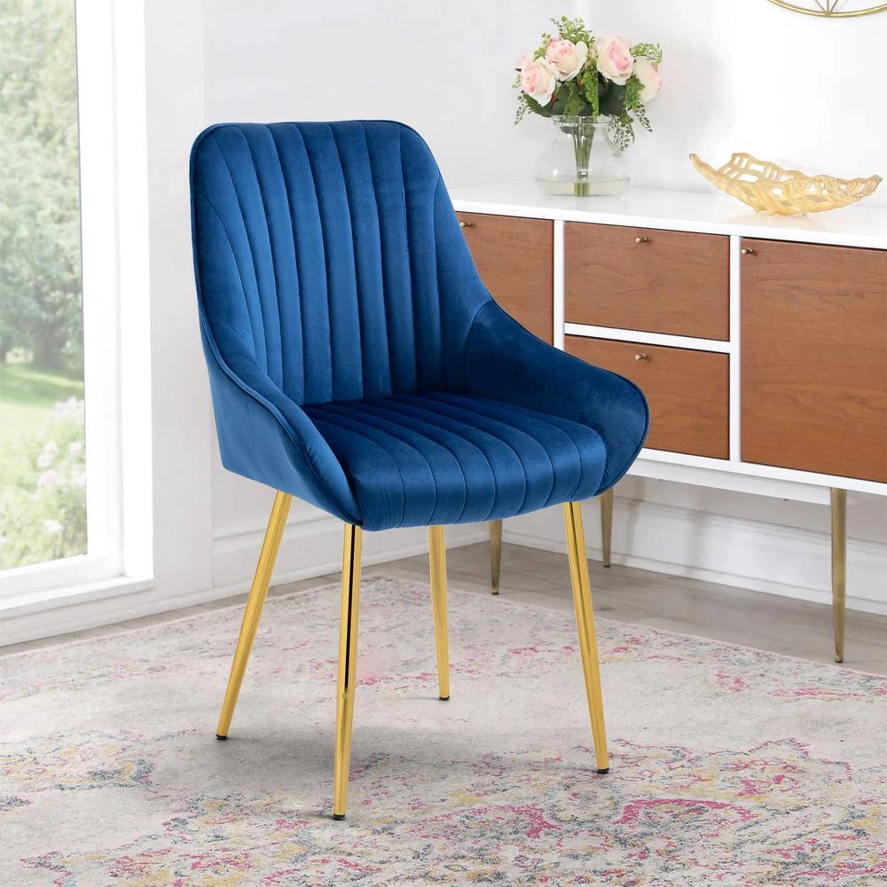 HOMEFUN modern dining chair with ergonomic shape has high back and four shiny golden plating legs. Metal frame internal the chair matches the high density foam add the steady of the whole chair. Perfect addition to the kitchen, living room, bedroom, guest room and so on.
