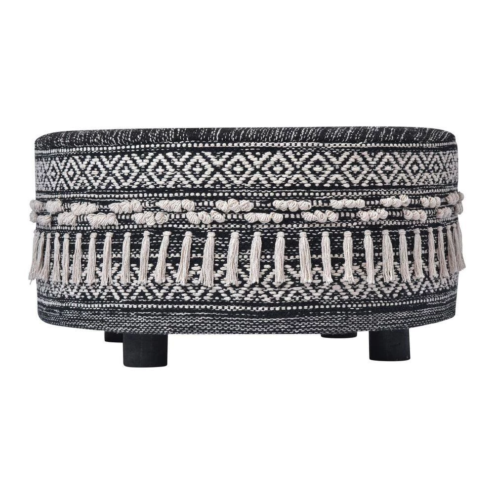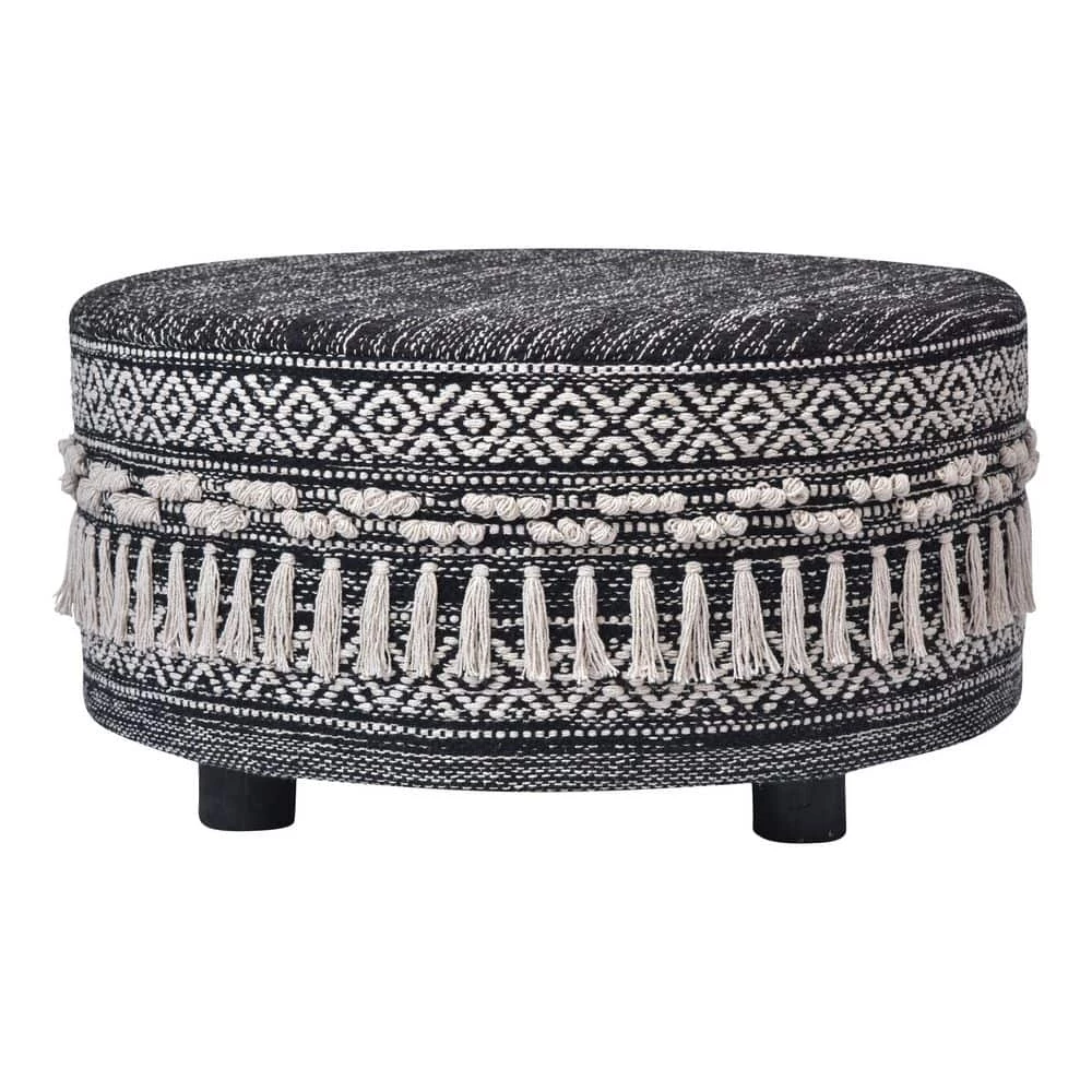 Put your feet up in style with this beautifully hand-crafted footrest, made by skilled artisans in India. Constructed from solid hardwood and wrapped in all-natural organic cotton upholstery, this ottoman is perfect for the bedroom, living room, or even under a bathroom vanity. Use it as an accent table, or pull it out as an extra seat for guests. Available in a variety of themes and styles, this ottoman will fit your home no matter what the occasion.