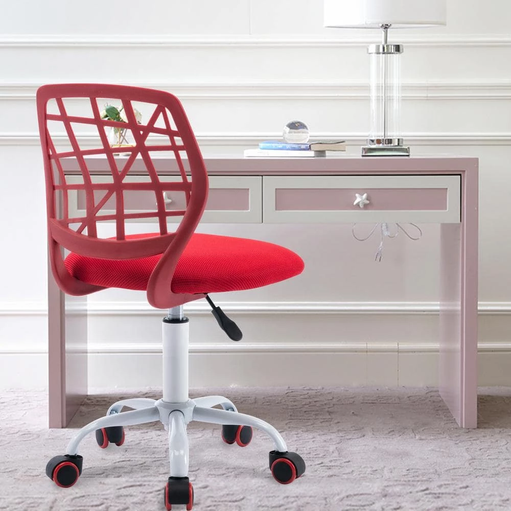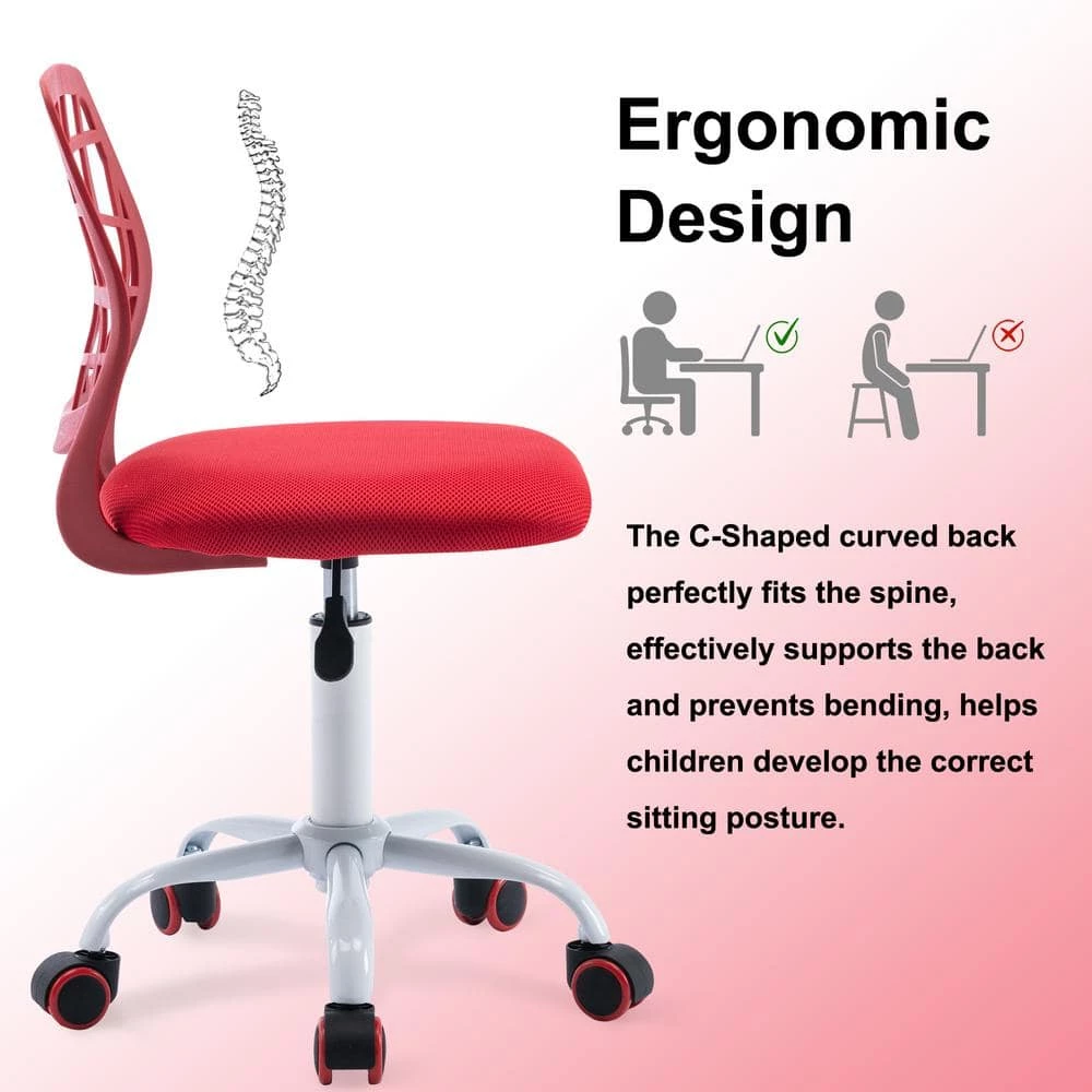 This cute desk chair is specially designed for 4-22 years old children/ teens and perfectly for small space, and it can be placed under the table without blocking the sidewalk. Home kids chair with upgraded gas-lift lifts up and down smoothly. 360 degree universal rubber wheel is smooth to move without scratching.