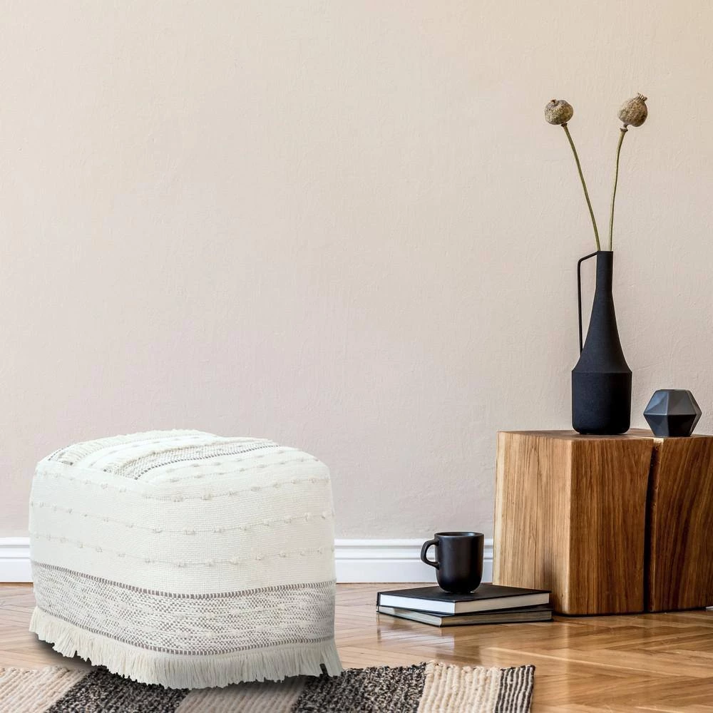 - Maker to market : woven with traditional textile techniques, this pouf is an intricately crafted home accent made by skilled artisans in India, provide your indoor space an updated and unique accessory with a hand-crafted finishing touch