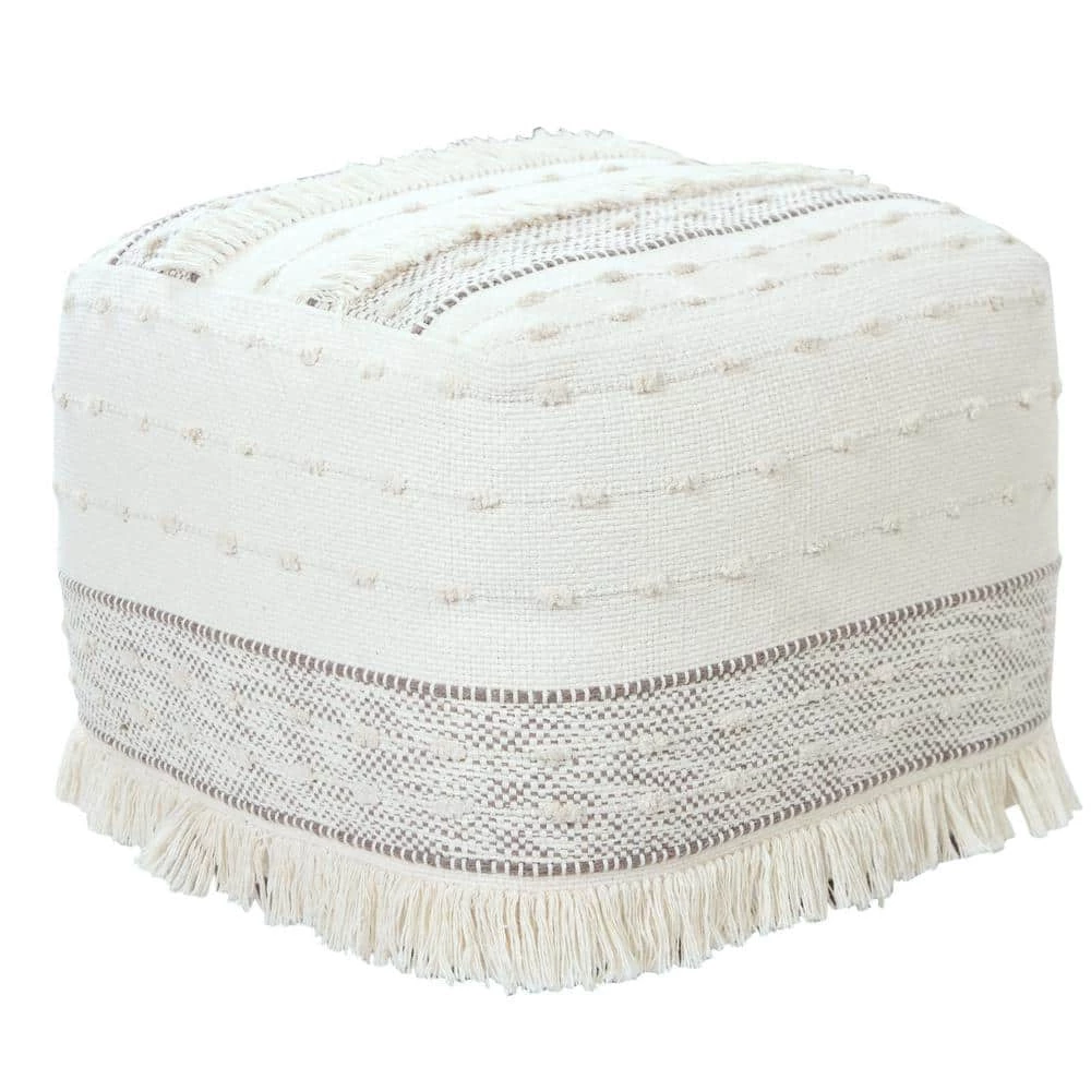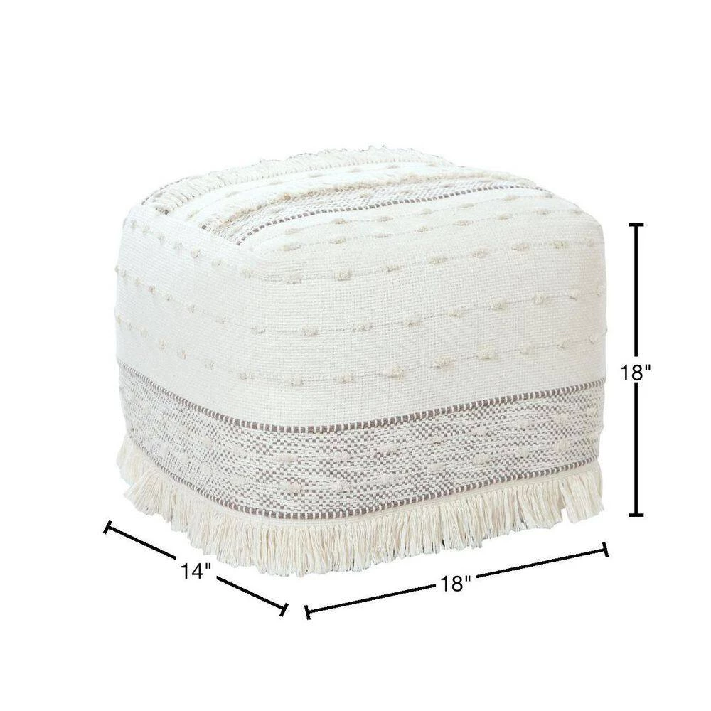 - Package includes : (1) 18 in. x 18 in. x 14 in. fully assembled 100% cotton (EPS balls filling) small cube foot stool pouf ottoman with all-around textured fringe and decorative detail