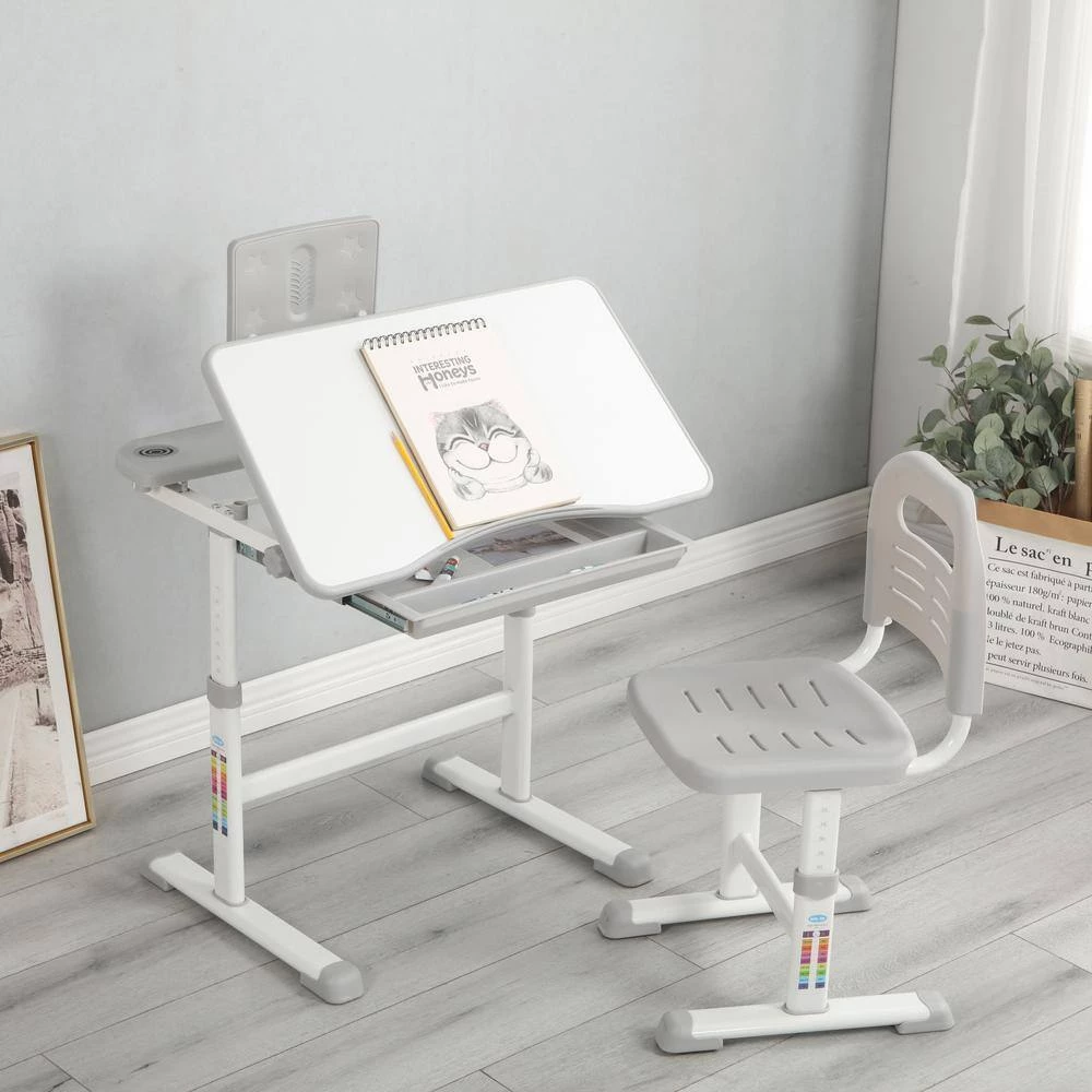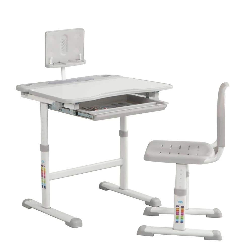 Kids grow fast. This desk and chair set will grow with your child. Both the chair and the desktop can be raised for most suitable and ergonomical size. Prevents slouching and promotes healthy posture. Rubber safety stops preventing.